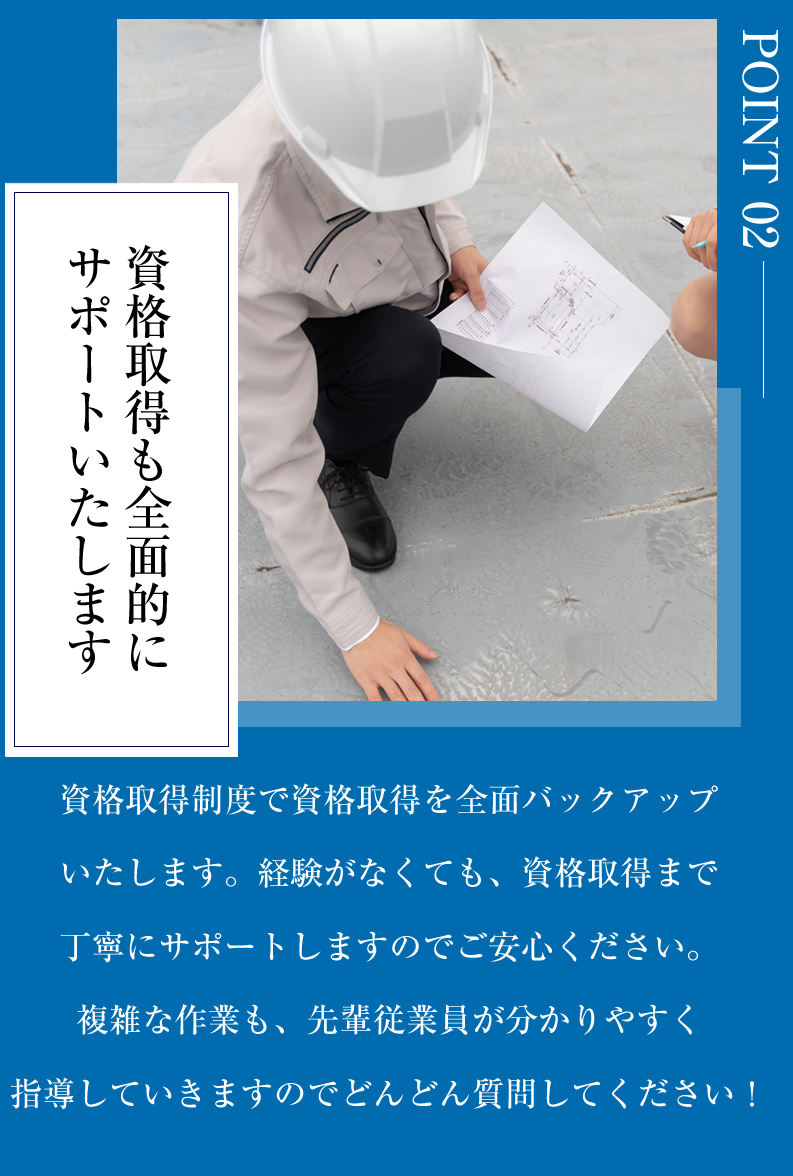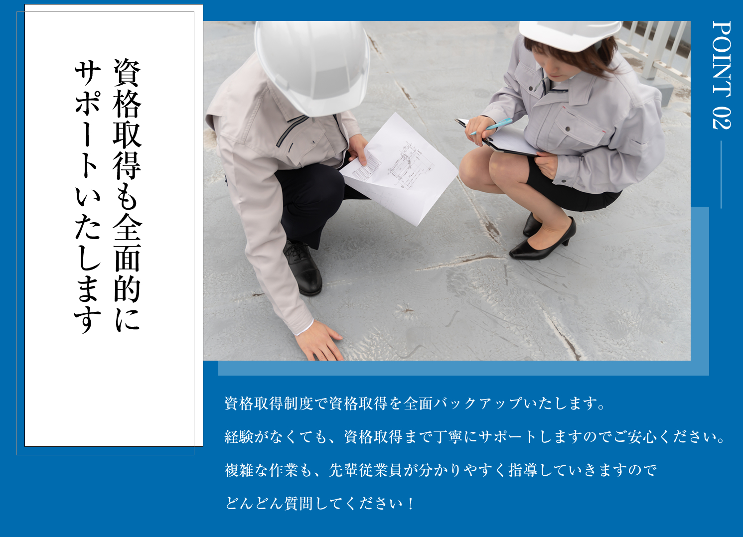 ○2級・1級建築士 ○2級・1級建築施工管理技士 ○2級・1級土木施工管理技士 ○2級・1級管工事施工管理技士 ○2級・1級電気工事施工管理技士 ○CADオペレーター(設計) ○土木設計や建築積算の経験